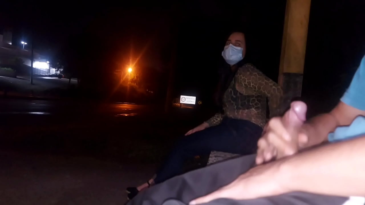 Une femme mature attend a l'arret de bus lorsqu'un homme bien dote s'approche et exhibe sa queue. elle reagit de maniere excitee et commence a lui faire une branlette en public. scene de sexe en plein air capturee sur video.